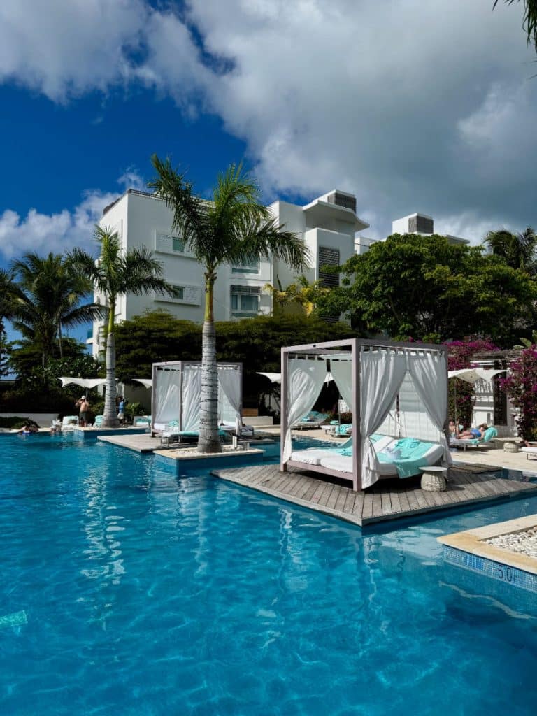 The Shore Club is consistently one of my top recommendations. It combines multiple pools, excellent dining, and a refined but approachable luxury feel. A shuttle connects guests to sister properties The Palms and The Sands and its location on a long stretch of beach at Long Bay is simply lovely.